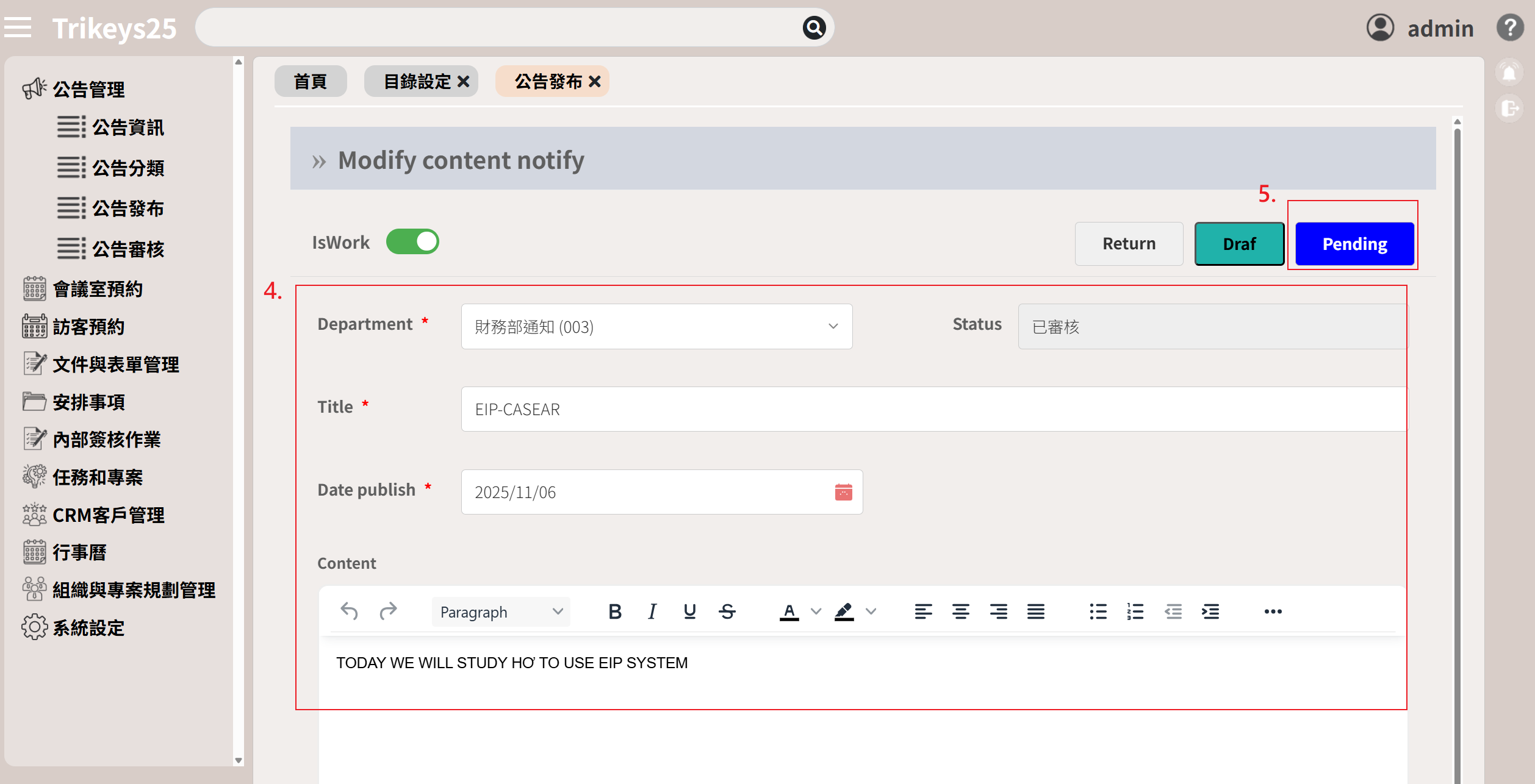 ※補充: 編輯後需重新審核,才會在公告資訊上呈現