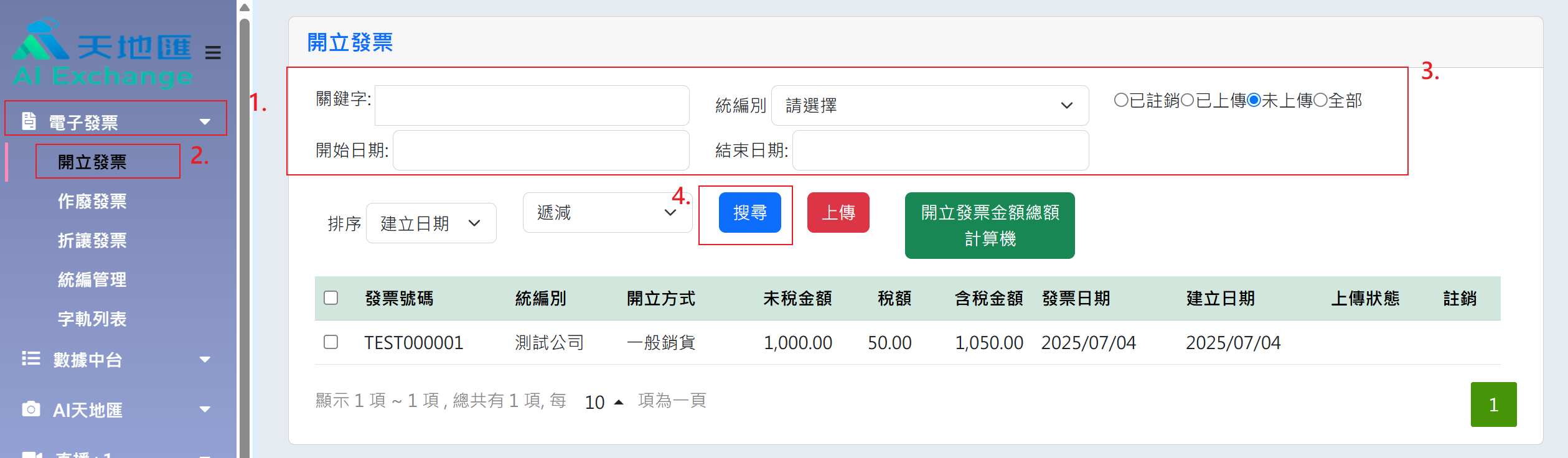 3. 點選開立發票金額總額計算機