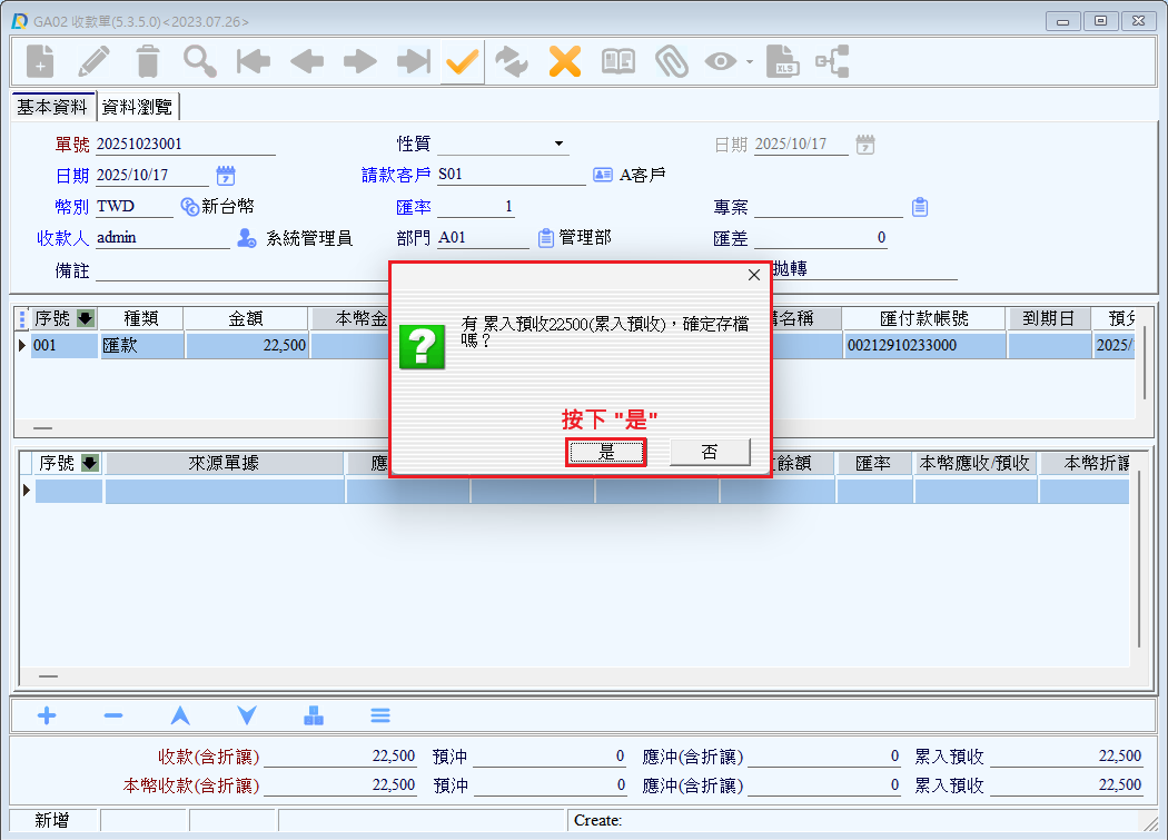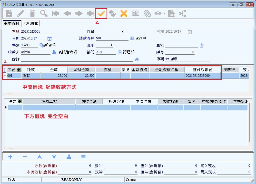 ●收款單號:收款單單號,由系統自動反寫。