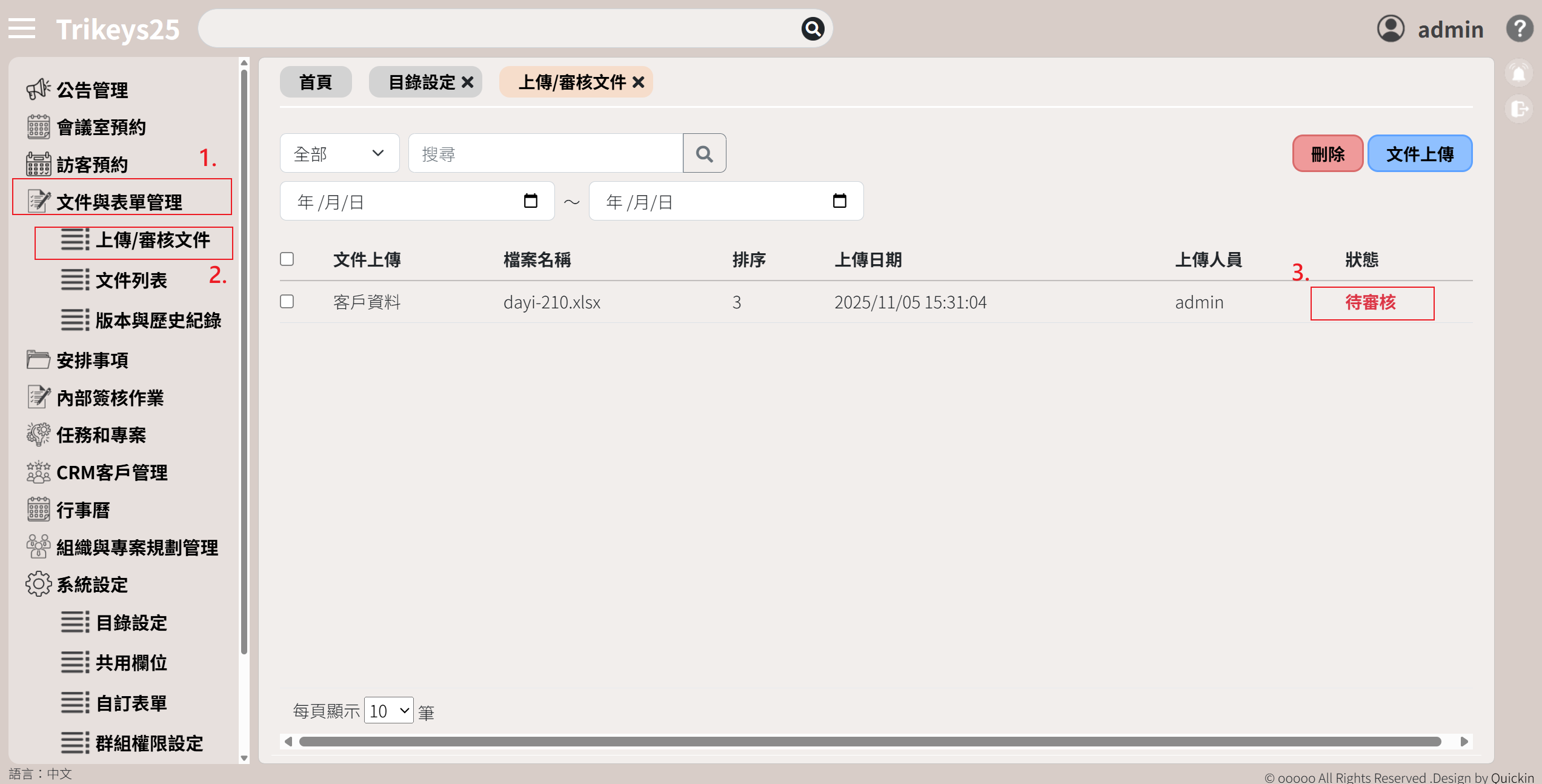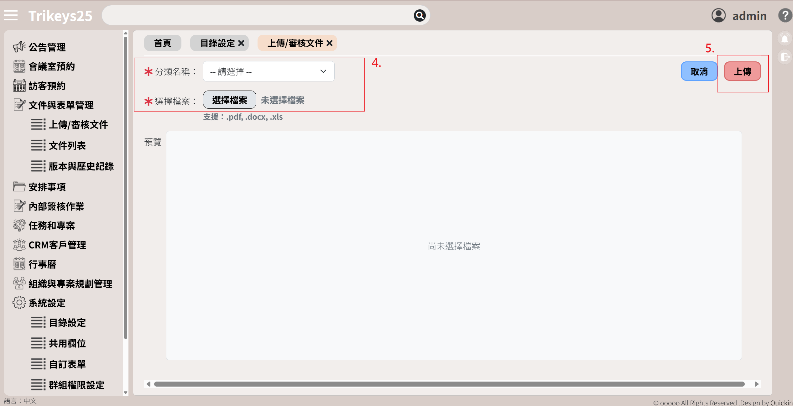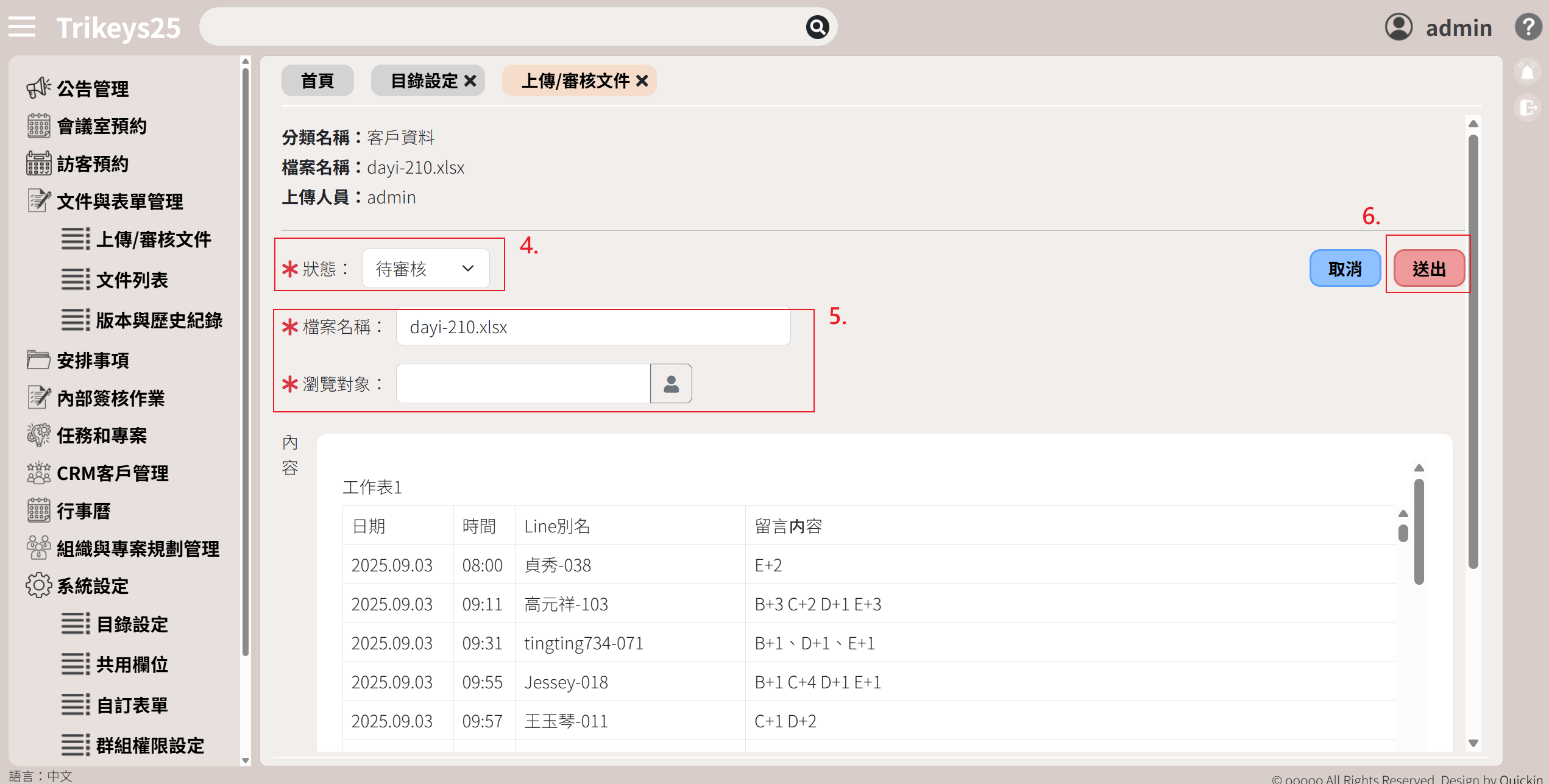 4. 選擇狀態已審核或退回(退回要填寫下方備註)