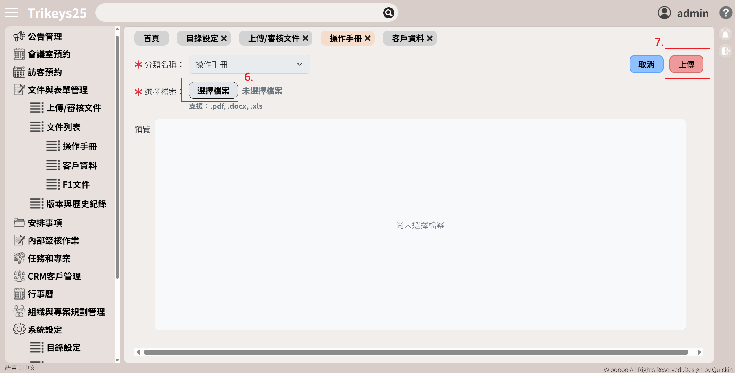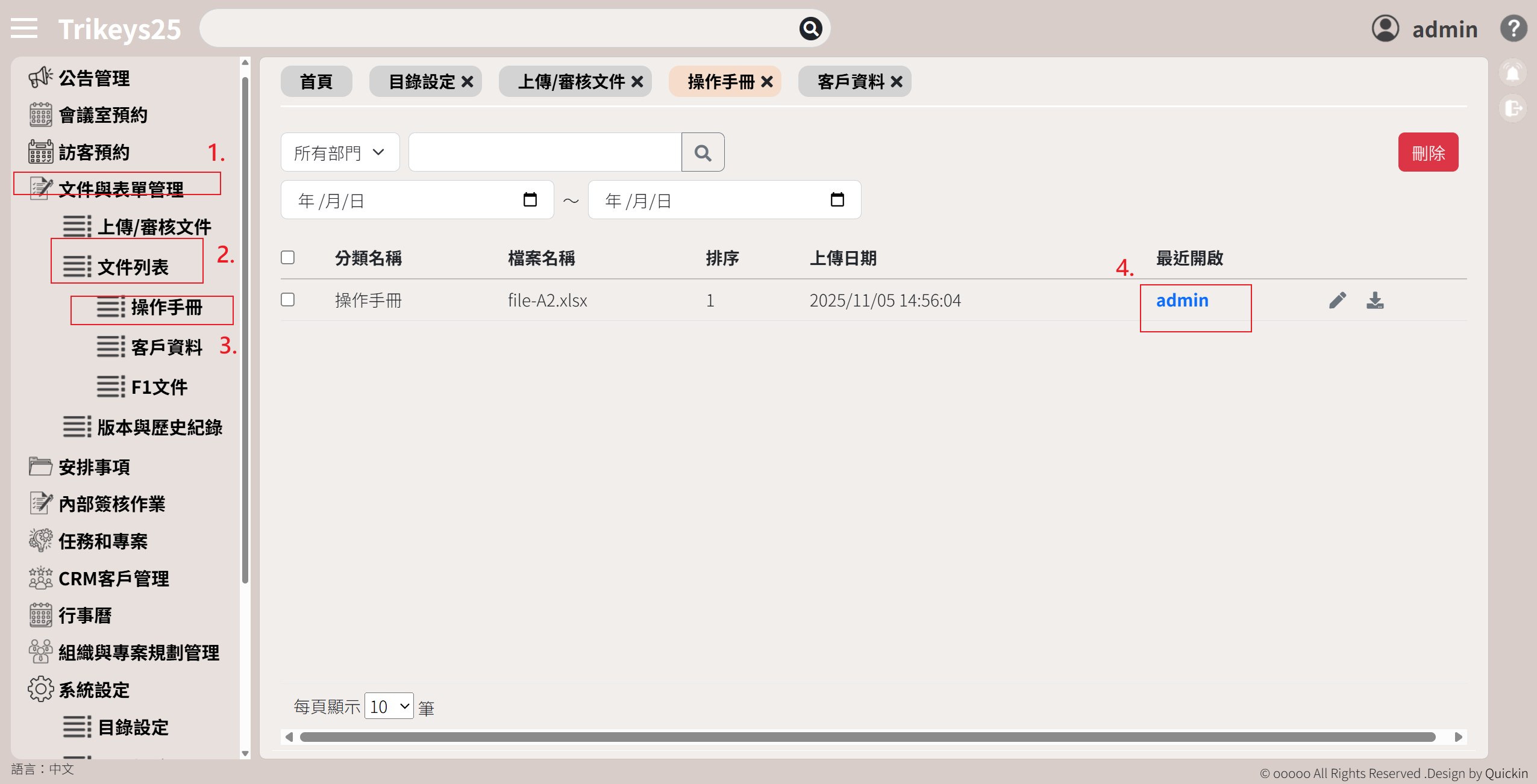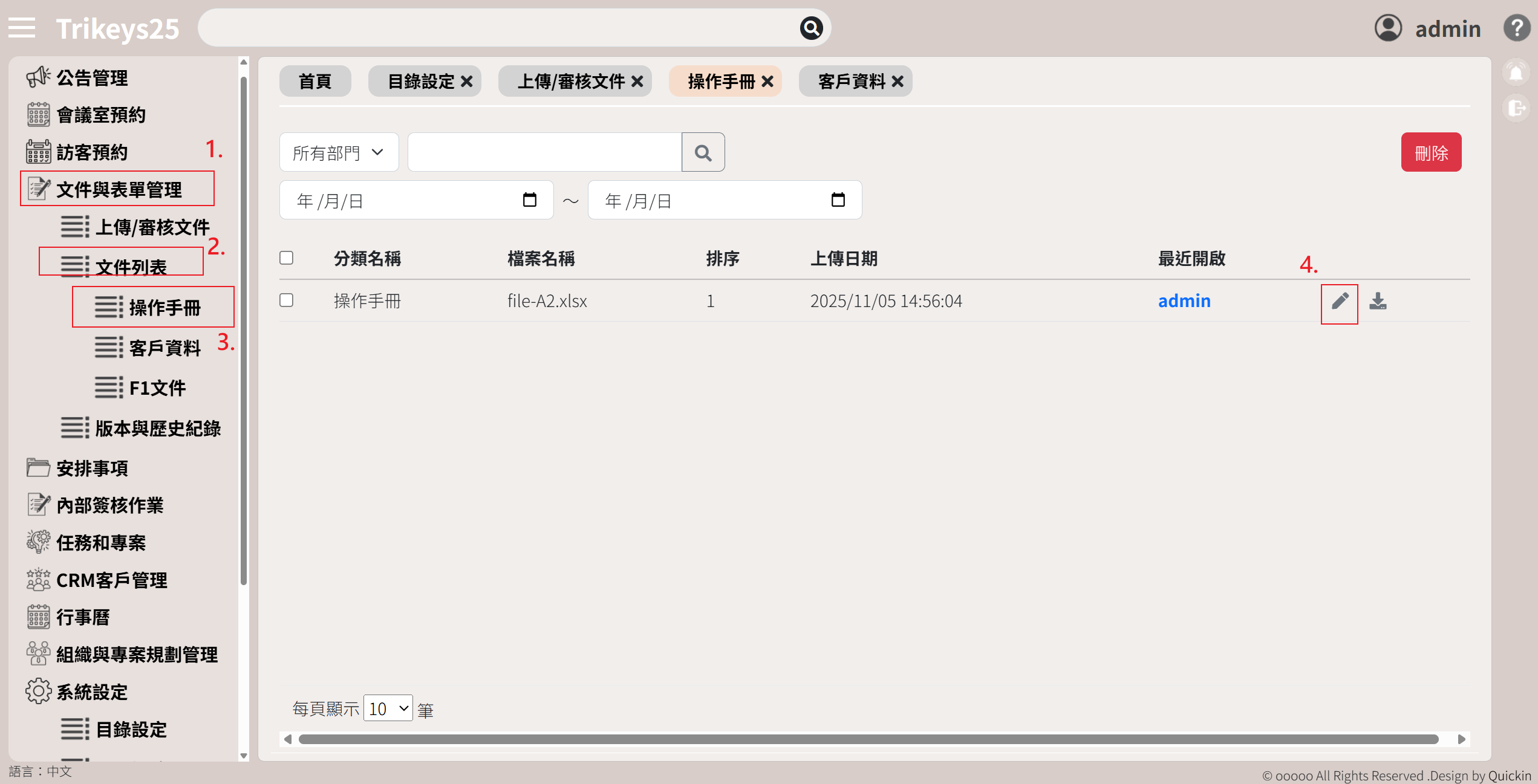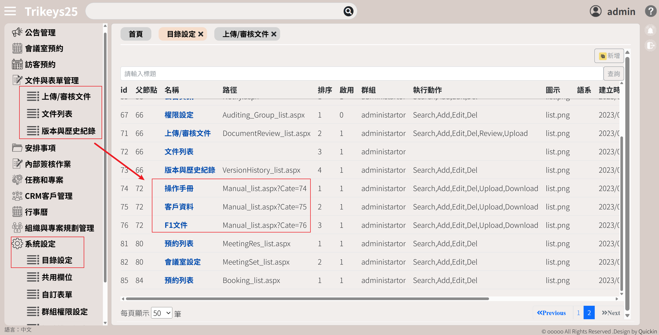 ◆ 文件列表的分類是由 系統設定→目錄設定 去新增,需由鈞陽給上路徑才能在列表上查看
