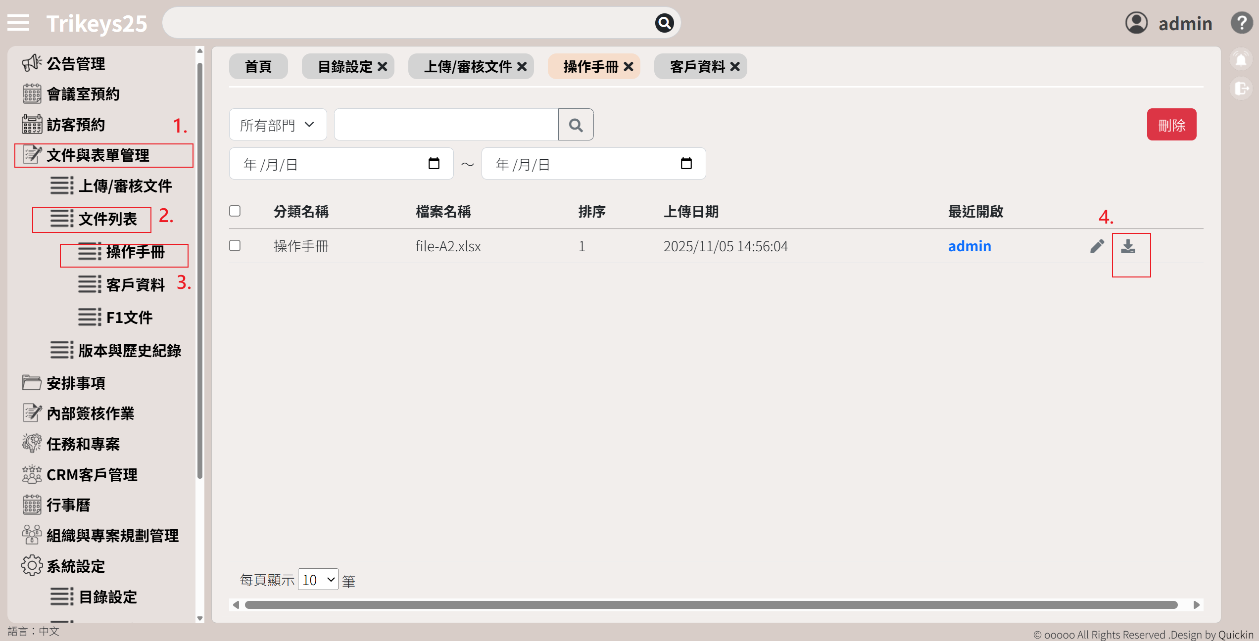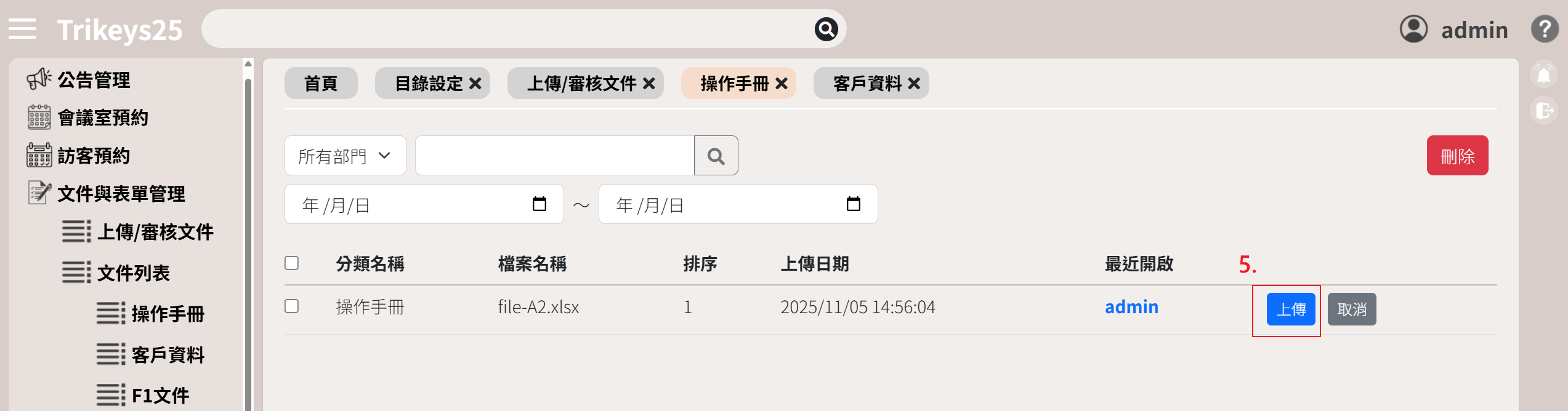 ◆ 文件上傳時選擇的分類名稱,就會在該分類目錄列呈現